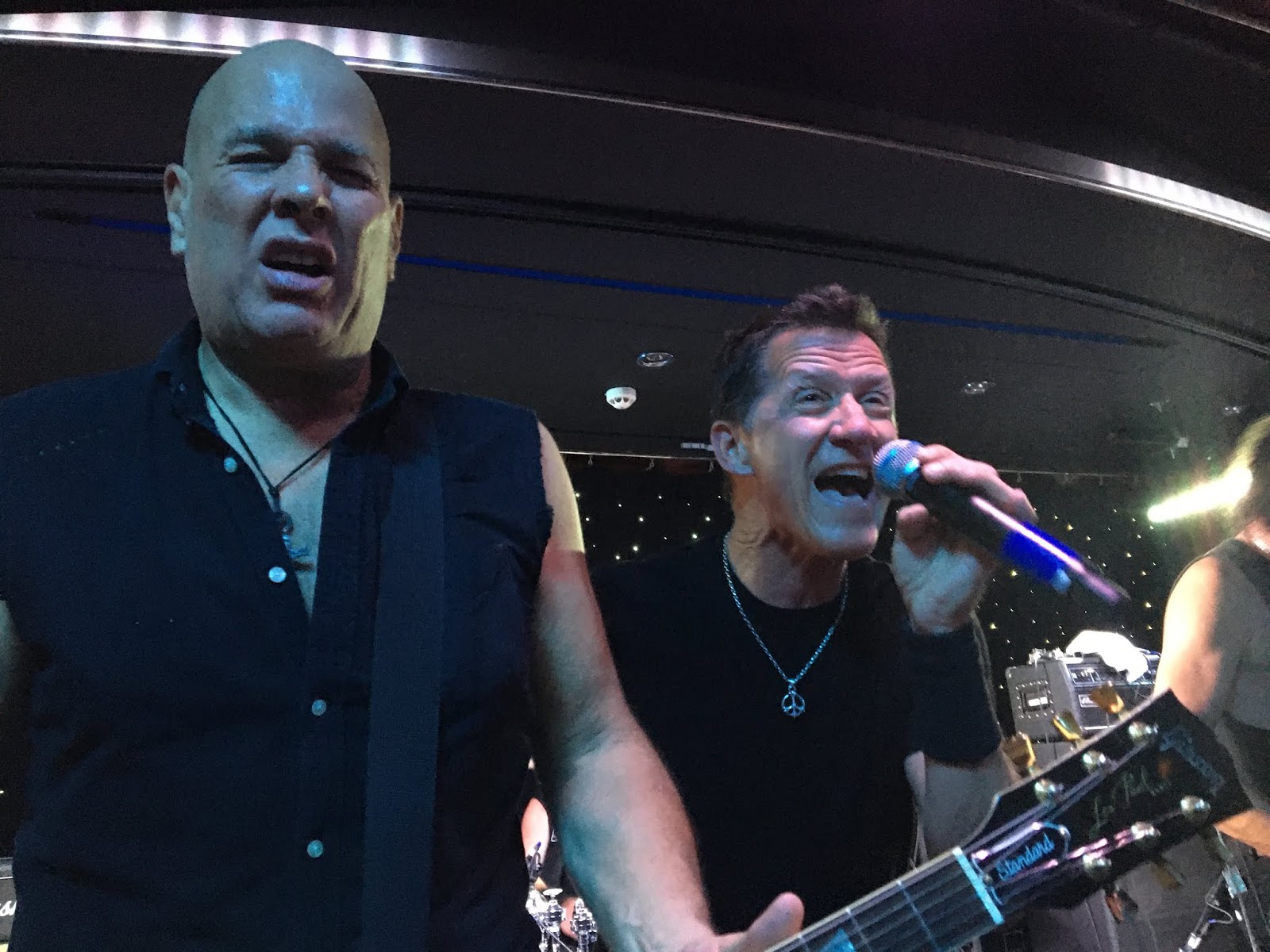 I had taken a little walk to get outside a bit and see the ship again. This may have been the breakfast when I met DD and Dave from Overkill in the cafe. They seemed to be in a big discussion about something that was possibly irking Dave. But I stopped and waved. Dave looked a little pissed but I politely introduced myself and told them I loved the show. I then reminded DD of our interview via Mighty Music re his solo album last year and it seemed to have jogged his memory.